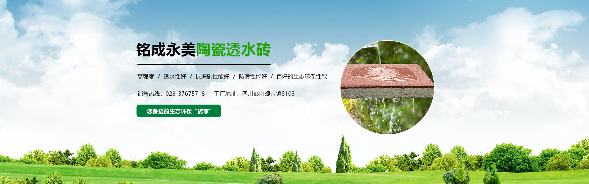 四川銘成永美環保科技有限公司(www_mcotcn_com.tqxxjc.cn)是國內非常早研究探索海綿城市的企業之一,公司主導產品:海綿城市鋪路磚家---銘成永美生態陶瓷透水磚已在全國多個重點項目使用。公司透水混凝土、雨水收集利用系統正在全國推廣。公司將整合海綿城市規劃設計、污水處理、污泥利用、環保設備、社會資本等海綿城市相關產業。為解決城市“熱島效應”、地表硬化,防止城市內澇,營造高質量的自然生態環境,改善城市生態平衡而不斷努力!公司將充分利用現有的互聯網資訊平臺,整合生態海綿城市產業鏈,打造集互聯網、科研、生產、銷售、規劃設計、PPP項目營運、工程施工為一體的綜合性環保科技公司,已初步建立覆蓋全國的業務團隊和渠道。